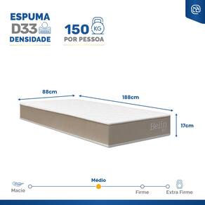 - Dimensões (larg. x comp. x alt.) 88x188x17cm.