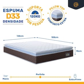 O pillow top adiciona uma camada plush ao colchão, ideal para quem precisa de um pouco mais de maciez sem comprometer o suporte ortopédico. Com capacidade para suportar até 120Kg por pessoa, este colchão é robusto e durável, garantindo que você desfrute de um investimento em descanso de longa duração. Cada detalhe é projetado para melhorar sua saúde e conforto noturno.