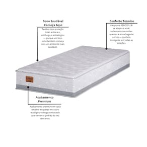 Vídeo demonstrativo. Ambiente Principal: Quarto Antiácaro: Sim Antialérgico: Sim Antifungo: Sim Certificado: INMETRO codigo_ean: 7898653376985 Comprimento: 188 cm Cor: Cinza Cor do Produto: Cinza Embalado a Vácuo: Não Espessura da Mola: 2 mm Itens Inclusos: 1 Colchão e Certificado de Garantia Linha ou Coleção: Oxford Marca: Arte Cúbica Estofados Molas por m²: 190 Nível de Conforto: Macio Origem do Produto: Nacional Peso: 18.0000 Pillow: EuroPillow Possui Certificado: Sim Possui Pillow: Não Precisa virar: Não Recomendações de Uso, Manutenção e Limpeza: Limpar com um aspirador e deixar ventilar. Não molhar. Não utilizar produtos com solventes. Revestimento: Malha 100% Poliéster Tamanho: Solteiro Tipo de Tecido: Malha Tipo do Colchão: Mola Marca: Não Informado