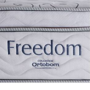 Características Técnicas Tipo de Colchão: Molas ensacadas individualmente Espuma: Viscoelástica Tecido: Malha hipersoft com elastano Tratamento Evo Care Vital: Óleo de Jojoba, Vitamina E e Aloe Vera, que protege a pele. Tratamento Antiácaros, Antibactérias e Antifungos Tecnologia No Turn: Não precisa ser virado Colchão Ortobom Freedom, Molas, Viscoelástica, Conforto, Tecnologia, Antiácaros, Antibactérias, Antifungos, Evo Care Vital, No Turn