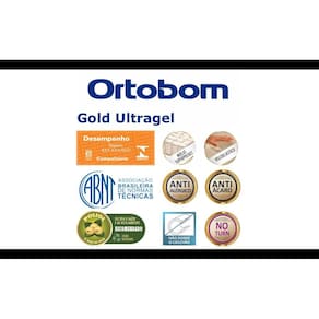 Colchão Gold Ultra Gel Casal (138x188x32) - Espuma Viscogel D45, molas Pocket - Ortobom SOBRE O PRODUTO Gold Ultra Gel é o representante Super Premium dentre os produtos Ortobom. Sua estrutura é composta pelo molejo Superpocket (ensacadas individualmente) que fazem o peso de um corpo não interferir no conforto do outro. Possui em sua camada de conforto a inovadora espuma Viscogel D45, que é a espuma com a mais alta tecnóloga do mercado e que se adapta como nenhuma outra a temperatura e contornos do seu corpo. Possui Malha Belga Super Soft de alta qualidade no tampo, que proporciona conforto e uma beleza sem igual, sua lateral é confeccionada em Camurça 3D que apresenta um visual único ao produto. Recebe um tratamento inovador, o Evo Care Vital, um composto de Óleo de Jojoba, Vitamina E e Aloe Vera, que protege a pele contra o envelhecimento precoce. Este tratamento funciona mesmo com a utilização do lençol, pois as fibras do colchão absorvem estes agentes. Recebe tratamento antiácaro e antialérgico. Devido a tecnologia No Turn o Colchão Gold Ultra Gel não precisa ser virado. Sem duvidas neste produto encontrará o que há de mais moderno e melhor no mercado. CARACTERÍSTICAS Estrutura em molas Superpocket ensacadas individualmente e espuma D33 Pró Aditivada. Camada de conforto em espuma Viscogel D45. Tampo em Malha Belga Super Soft e lateral em Camurça 3D. Tratamento Evo Care Vital, antiácaros e antialérgico. Tecnologia No Turn. INFORMAÇÕES TÉCNICAS-Estrutura Interna: Estrutura em molas Superpocket ensacadas individualmente e espuma D33 Pró Aditivada. Camada de conforto em espuma Viscogel D45.-Estrutura externa: Tampo em Malha Belga Super Soft com tratamento Evo Care e bordado em matelassê, manta de espuma D33 Pró Aditivada, lateral em Camurça 3D. Possui respiros laterais. Tecnologia No Turn.-Cor: Dourado e Branco -Altura: 0,32m -Largura: 1,38m -Comprimento: 1,88m -Peso: 41,5104kg -Capacidade de suporte: Até 150kg por pessoa -Acompanha: 1 Colchão Ortobom + Manual -Este produto possui 1 volume CUIDADOS COM O PRODUTO 1. Não coloque seu colchão sobre estrado inteiriço exceto se utilizado sobre um box. Para melhor durabilidade utilize um box Ortobom.2. Mensalmente escove e aspire seu colchão, mantendo-o sempre limpo. 3. Não utilize ferro de passar roupas, secador de cabelos e outra fonte de calor ou vapor sobre o colchão.4. Para melhor conservação do produto utilize sempre um protetor de colchão Ortobom.5. Nunca dobre ou amasse o colchão.6. A cada 3 meses gire o colchão lateralmente e de baixo para cima (com excessão dos colchões com tecnologia No Turn). GARANTIA 36 Meses contra defeitos de fabricação