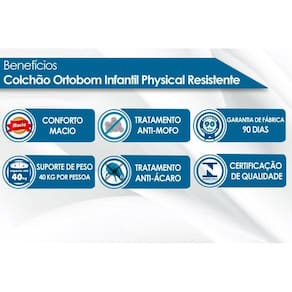 Tipo de Espuma do Colchão - Espuma de Poliol Vegetal Densidade da Espuma do Colchão - 20 Nível de Firmeza do Colchão - Macio Peso Máximo Suportado do Colchão - 40 kg