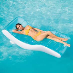 Marca: Intex Design diferenciado, com contornos para maior conforto Duas camaras de ar para maior segurança Pode se usar tanto na piscina como boia ou utilizar como uma poltrona em sua casa Possui porta copos Dimensões: 191cm x 99cm Suporta um peso de 100 Kg e seu uso está recomendado a partir de 14 anos de idade