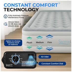 BOMBA DE ALTA SAÍDA INTEGRADA O colchão de ar elevado da cama inflável é equipado com uma bomba de alta saída embutida que pode inflar e desinflar rapidamente o colchão inflável até a firmeza desejada. Ele também tem um bolso de zenamento de cabo para manter os quartos organizados. OPERAÇÃO DE BOMBA DE CONFORTO CONSTANTE Este colchão de ar elevado com bomba possui um recurso de operação de bomba de conforto constante ultrassilencioso totalmente automático que reinfla automaticamente a cama quando a pressão do ar cai abaixo de um nível de baixa pressão predeterminado. PROJETO ELEVADO DE O colchão de ar elétrico inflável elevado SereneLife Premium com bomba embutida é elevado a do chão, portanto, entrar e sair da cama é muito mais fácil. Adequado para crianças e adultos de todas as idades. Vem com bolsa de zenamento e kit de remendo de reparo. FLOCKING SOFT, PLUSH O colchão inflável durável de tamanho normal com bomba embutida apresenta uma superfície de sono flocada macia e macia de alta qualidade para aumentar o conforto e ajuda a manter os lençóis no lugar. Cama sobressalente conveniente para acampar ou para hóspedes Marca: Não Informado