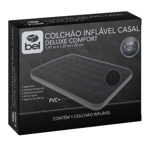 Escolha o Colchão Inflável Casal Deluxe Comfort Preto Bel e garanta noites de descanso com qualidade, praticidade e o padrão de excelência que você procura.