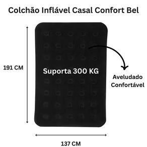 Colchão Inflável Casal Deluxe Comfort Bel Preto 191x137x22 Resistente Portátil para Casa Viagem Camping 300kg
