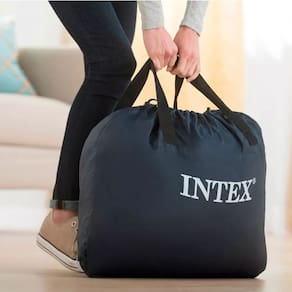 - Marca: Intex - Modelo: 64447 110v ou 64448 220V - Linha: Hard-Beam Deluxe - Material: Flocagem + laminado de PVC - Tempo aproximado de insuflação: 5 min - Dimensões (cm) - Altura: 46cm - Largura: 1,52cm - Comprimento: 2,36cm - Peso: 12kg