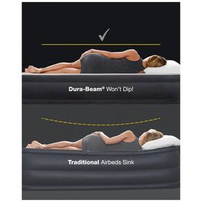 BOMBA INTERNA A bomba elétrica interna se conecta a uma tomada de parede padrão e torna simples e conveniente inflar e desinflar o colchão de ar. SUPORTE DE BORDA A faixa de borda fornece estabilidade adicional e uma área de sono maior. SACO INCLUÍDO O saco de transporte está incluído para fácil zenamento e transporte Marca: Não Informado
