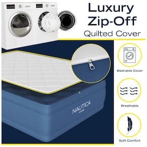 Pillowtop Luxury da Nautica Home o colchão de ar queen deluxe Cloud Supreme mantém você dormindo profundamente em qualquer lugar. A capa acolchoada com zíper fornece uma superfície de dormir macia e lavável na máquina. Este colchão inflável Nautica Home possui uma capa de travesseiro totalmente removível, feita com tecido Cool Tek para uma sensação de resfriamento. Ar hermético e 100 testado contra vazamentos a bomba embutida Nautica Home Sure Lock resiste à perda de ar e mantém sua cama firme a noite toda. Apoiado por uma garantia premium de 3 anos. O controle de discagem fácil na bomba de inserção permite que você infle e esvazie a cama de ar conforme sua conveniência inflação total em 2 minutos. O suporte de borda elevada e uma base estabilizadora sem pontas eliminam o movimento e a flacidez dos colchões de ar tradicionais. Sem estiramento, resistente a perfurações o Cloud Supreme é construído com vinil Duratex extra grosso. Esta tecnologia hermética combina vinil e tecido para minimizar o estiramento e evitar a deflação. O design resistente suporta até 360 kg. e proporciona a sensação de uma cama tradicional, mas dobra se facilmente para zenamento e transporte. Conveniente bolsa de transporte Nautica Home incluída. Suporte Postural Superior O design da bobina offset do Nautica Home Cloud Supreme cria um colchão firme para alívio da pressão e alinhamento da coluna vertebral. Perfil de colchão inflável elevado de perfeito para hóspedes durante a noite, camping e muito mais. O suporte de borda do perímetro mantém os travesseiros de cama no lugar. O colchão de ar queen size portátil Cloud Supreme é ideal para uso doméstico cabe em lençóis de bolso profundos Marca: Não Informado