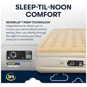 A bomba primária infla e desinfla automaticamente o colchão de ar em menos de 4 minutos, a bomba secundária neverFLAT monitora e mantém silenciosamente a pressão do ar no nível de conforto desejado enquanto você dorme O conveniente recurso de desligamento automático na bomba primária desliga automaticamente o sistema da bomba quando o colchão de ar é totalmente inflado ou desinflado Tampa superior do travesseiro lavável, 35 bobinas circulares criam uma superfície de sono nivelada e de suporte, materiais de qualidade que são perfurados e resistentes à água para garantir uma vida útil longa O topo durável fornece uma superfície de sono suave e confortável que também mantém seus lençóis no lugar, fabricado com materiais de qualidade que são perfurados e resistentes à água para garantir uma vida útil longa 46cm de altura elevada tornam mais fácil entrar e sair da cama Bolsa de transporte incluída para zenamento e viagem convenientes, Queen. Capacidade de peso 227kg. Encha o colchão de acordo com as instruções incluídas. Observe que o material pode esticar durante os primeiros vários usos. Recomenda se inflar sua cama pelo menos 1 hora antes de usá la ou medi la. Pode ser necessário ar extra após esse período para obter firmeza total. Para itens com o sistema de bomba NeverFLAT, esse ar extra é adicionado automaticamente. Todas as medidas do colchão devem ser realizadas a partir do centro da superfície da cama. Para largura e comprimento, meça da cama do centro de cada lado, do ponto mais largo ao ponto mais largo. Para a altura, meça no centro do lado mais comprido do chão até o ponto mais alto da superfície da cama Marca: Não Informado