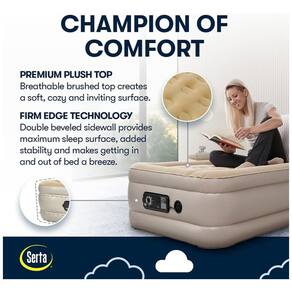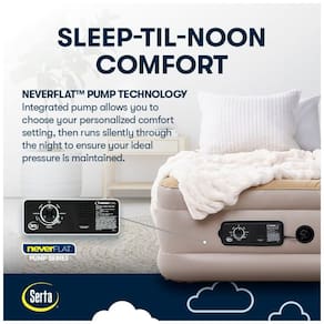 COLCHÃO DE AR GÊMEO PADRÃO A construção em PVC com parte superior flocada e 21 bobinas circulares neste colchão de ar de tamanho duplo cria uma superfície de sono forte, solidária e nivelada, independentemente de como você se move durante a noite. A altura elevada de 45cm facilita a entrada e saída da cama. BOMBAS INCORPORADAS Duas bombas embutidas em uma cama. O sistema patenteado de bomba NeverFLAT mantém silenciosamente o colchão de ar inflado a noite toda. Colchão de ar em menos de 4 minutos. O SECUNDARY NeverFLAT PUMP monitora e mantém silenciosamente a pressão do ar no nível de conforto desejado enquanto você dorme. O recurso conveniente de desligamento automático na bomba primária desliga automaticamente o sistema da bomba quando o colchão de ar estiver totalmente inflado , desinflado. CHAVES DE SUCESSO inflar o colchão de acordo com as instruções incluídas. Observe que o material pode esticar durante os primeiros usos. Recomenda se inflar a cama pelo menos 1 hora antes de usá la ou medi la. Pode ser necessário ar extra após esse período, para obter total firmeza.Com o sistema de bomba NeverFLAT, esse ar extra é adicionado automaticamente. O QUE ESTÁ INCLUÍDO 1x colchão de ar duplo com bombas embutidas, 1x ca bolsa de transporte para zenamento e viagem convenientes, 2x correções de reparo e 1x manual do usuário. A poderosa bomba primária integrada permite a inflação e a deflação sem esforço do leito aéreo. O recurso de desligamento automático aciona a bomba primária assim que a cama estiver totalmente inflada ou desinflada, permitindo ligar a bomba e sair sem se preocupar com a bomba queimada. As configurações de discagem nítidas para pelúcia, médio e firme permitem níveis de conforto preferidos para colchões pessoais. A tecnologia de detecção de pressão monitora e ajusta constantemente para corresponder ao nível de conforto do colchão escolhido. Bombeie silenciosamente, conforme necessário, engate durante toda a noite, criando uma sensação consistentemente confortável. 21 bobinas circulares na cama de solteiro e 35 bobinas circulares na cama de casal criam uma superfície confortável para dormir, enquanto reforços verticais e horizontais permitem que a cama mantenha a forma. Top flocado mantém a roupa de cama no lugar. Bolsa de transporte incluída. Garantido para ficar inflado a noite toda NOTA Certifique se de que a bomba NeverFlat esteja ligada enquanto estiver em uso para manter a cama totalmente inflada. A cama é feita de PVC, que se estica à medida que aquece com o uso. À medida que o PVC se estende, o leito aumenta de volume e com o NeverFlat bombeado ligado, a bomba mantém a pressão em um nível constante e elimina a sensação de esvaziamento Marca: Não Informado