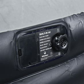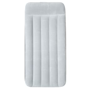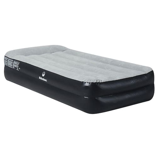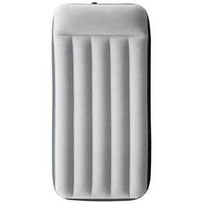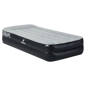 Colchão Inflável Sol Eletrico Klr. Uma de suas características é o seu 46 cm de altura, o que permite que quem nele dorme fique suficientemente isolado do solo, para conservar o calor do próprio corpo. Seu comprimento é 191 cm e sua largura 97cm, podendo ser utilizado por uma pessoa. Feito em PVC Cinza e preto, resiste até 227 quilos.