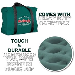 Bobinas de ar sobre os poços das rodas Construção de PVC de alto grau Bomba de ar DC portátil com cabo de 4 metros incluído para camas de tamanho completo de 1,80 a 2,40 metros. Este produto não serve para camas de 1,50 metros o sistema Comfort Coil distribui uniformemente o peso. Tamanho Camas de tamanho integral. Os colchões de ar para cama de caminhão AirBedz Lite vêm em vários tamanhos diferentes para caber em caminhões compactos, médios e completos em layouts de cama longa e curta. Os recortes de cada lado permitem que o colchão se encaixe em torno dos poços das rodas em uma caminhonete, criando uma área de sono que utiliza toda a base do caminhão. Incluído na embalagem da bomba portátil de inflagem DC com cabo de alimentação de 4,8 metros para facilitar a inflação. Um sistema integrado de bobina de ar distribui uniformemente o peso sobre um colchão de 30cm de espessura Marca: Não Informado