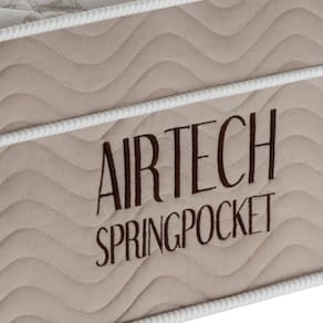 Novo Colchão Airtech Spring Molas ensacadas tem sua estrutura composta por Molas Superpocket ensacadas individualmente, que fazem o peso de um corpo não interferir no conforto do outro, proporcionando um perfeito suporte para a coluna e conforto para qualquer biótipo, possui Ortopillow e em sua camada de conforto espuma D26 Pró Aditivada de Alta Performance, bordado em matelassê e placa EPS. Seu tampo é em malha de alta qualidade e lateral em Camuça, apresentando um toque refinado ao colchão. Possui a tecnologia No Turn, que dispensa a necessidade de virar o colchão. O Airtech Spring Molas ensacadas recebe tratamento antialérgico e antiácaro, ajudando a reduzir os problemas respiratórios. Ideal para suas confortáveis noites de sono. CARACTERÍSTICAS