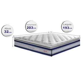 Colchão King de Molas Ensacadas D33 com Pillow TOP Cama inBox Select 193x203x32 Azul - Azul Marinho