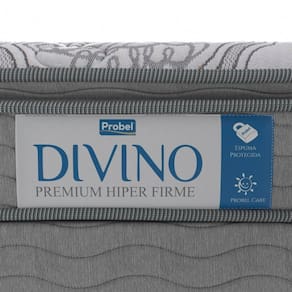 O colchão Divino Premium Hiper Firme com Pillow Super possui máxima sustentação de pressão em sua superfície e se destaca pela combinação dos benefícios de três mantas de espumas e pela gramatura de seu tecido em malha. A linha de colchões Divino é uma das tradicionais da Probel e se caracteriza pela firmeza de suas estruturas, são recomendados para usuários já acostumados com esse Nível de Firmeza ou que tenham um biotipo consistente, tanto em peso quanto em altura.