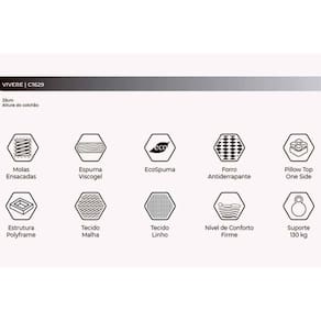 Camadas Interna do Estofamento de Espuma do Colchão - AG - Visco Gel Tipo de Estrutura Ortopédico do Colchão - AG Tipo de Mola do Colchão - Ensacadas Nível de Firmeza do Colchão - Firme Peso Máximo Suportado do Colchão - 130 kg
