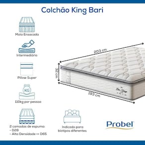 Com alto padrão de qualidade, a combinação das duas mantas de espumas, sendo uma em densidade D28 e a outra na alta densidade = D65, o Colchão King Bari traz a sustentação intermediária., atendendo tanto aqueles que estão acostumados com a sensação firme quanto os que preferem uma superfície mais macia.