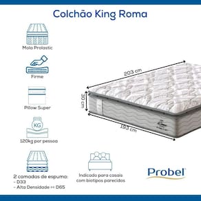 As espumas do Colchão King Roma foram desenvolvidas com a Tecnologia ProMax Probel, que passam por rigorosos testes de qualidade em laboratório e recebem tratamento antiácaro e antifungo.