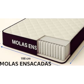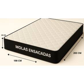 - Proteções: Antiácaro - Antialérgico - Antifungo - Antimofo;- Acabamento: Bordado em Matelassê;- Matéria prima: Poliéster/Bordado;- Mola: Ensacada;- Peso máximo recomendado: até 100kg (por pessoa);- Garantia: 3 meses;- Dimensões do produto (altura x largura x comprimento): 28x198x203cm;