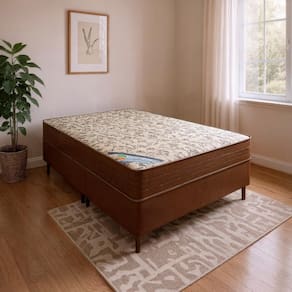 O aspecto ou proporção do colchão vai variar de acordo com o tamanho escolhido (Solteiro, Casal, Queen, King). A foto serve apenas de referência para visualização de acabamento e detalhes estéticos do produto.
