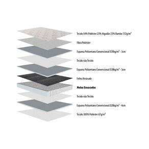 BENEFÍCIOS EXTERNOS DO COLCHÃO Tipo de Pillow - Pillow Top Europeu Tipo de Bordado do Tecido de Revestimento - Localizado Tipo Tecido de Forração Revestimento - Fibras de Bambu - Jacquard/Malha - Poliéster Tipo de Tecido de Revestimento da Faixa Lateral - Bordado - Poliéster Tecido com Tratamento - Íons de Prata - AntiÁcaro e AntiFungo Modo de Utilização - One Side Tipo de Forração do Revestimento Inferior - Antiderrapante