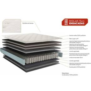 Camadas Interna do Estofamento de Espuma do Colchão - D26 Densidade da Espuma do Colchão - D28 Tipo de Mola do Colchão - Ensacadas Nível de Firmeza do Colchão - Firme Peso Máximo Suportado do Colchão - 120 kg