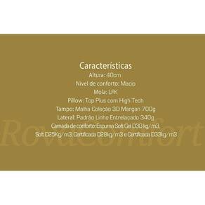 COLCHÃO (CARACTERISTICAS) Camadas Interna do Estofamento de Espuma - Gel - Soft - D20 - D28 - D30 - D33 Tipo de Mola - LFK Nível de Firmeza do Colchão - Extra Macio Peso Máximo Suportado - 120 kg