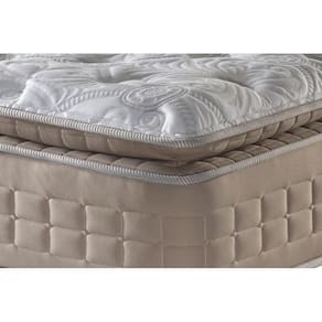 BENEFÍCIOS EXTERNOS DO COLCHÃO Tipo de Pillow - Pillow Top Americano Tipo de Bordado do Tecido de Revestimento - Localizado Tipo Tecido de Forração Revestimento - Malha de Alta Qualidade Cor do Tecido do Tampo - Claro Tipo de Tecido de Revestimento da Faixa Lateral - Veludo Importado - Linho Cor do Tecido de Revestimento da Faixa Lateral - Clara Tecido com Tratamento - AntiÁcaro e AntiFungo Modo de Utilização - One Side Tipo de Forração do Revestimento Inferior - Antiderrapante