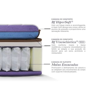 Pillow Top Extra Macio: Combina as espumas Bf Hiper Soft® e Bf Viscoelástica®