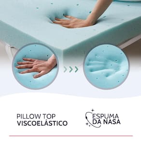 Camada de Conforto - Pillow Top: fabricado com a tecnologia da espuma viscoelástica da NASA, esse pillow traz uma camada de conforto mais macia que alivia os pontos de pressão e proporciona a sensação de um colchão te abraça, resultando em um sono profundo e restaurador. E ainda conta com um tecido hipoalergênico para maior.