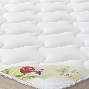 Confeccionado em malha de Bamboo, possui a viscose natural que atua na regulação térrmica do colchão, afasta a umidade e é naturalmente repelente de ácaros. Considerada uma malha que proporciona um colchão mais higiênico e saudável, beneficia especialmente pessoas alérgicas.
