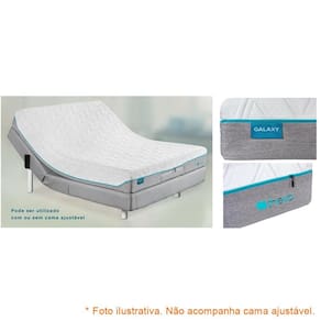 15cm de espuma de poliuretano D28 + 7cm de Espuma de Viscoelástico D50 que alivia a pressão exercida pelo corpo, diminuindo o girar noturno, mantendo um sono tranquilo e reparador.