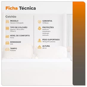 Atraves da utilizacao das espumas mais avancadas do mercado, o colchao Hanover Orthopedic oferece um nivel de conforto excepcional. Em comparacao aos colchoes de molas, os modelos de espuma se destacam por sua firmeza, o que resulta em um sono profundamente revigorante para nossos clientes.