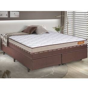 Caracteristicas: Molejo estrutural com molas ensacadas individualmente Espuma de suporte D-33kg/m e espuma de acabamento D-20kg/m Estrutura reforcada com borda perimetral em espuma D-26kg/m e feltro resinado
