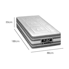Colchão Le Griff Solteiro Molas Ensacadas 33x188x88 Sankonfort O Colchão Le Griff Solteiro Molas Ensacadas 33x188x88 Sankonfort é perfeito para quem deseja uma noite de sono tranquila e revigorante. Com molas ensacadas, ele proporciona um suporte firme e individualizado, garantindo um descanso sem interrupções. E não se preocupe com a qualidade, pois a Sankonfort é uma marca renomada no mercado de colchões, e este produto não decepciona. Com materiais de alta qualidade, você pode ter a certeza de que está investindo em um colchão que vai durar por muito tempo. E se você está se perguntando sobre o design, não se preocupe, o Colchão Le Griff tem um visual elegante que vai se encaixar perfeitamente no estilo do seu quarto.\nMEDIDAS\nAltura 33 cm\nComprimento 188 cm\nLargura 88 cm\nCARACTERÍSTICAS\nFabricante Sankonfort\nModelo Colchão Le Griff Solteiro\nTipo do Produto Colchão Solteiro\nPossui Molas Ensacadas Sim\nNível de Conforto Macio com Firmeza\nDensidade Espuma D28\nRevestimento Tecido ecológico de fibras naturais de bambu, com borda de polipropileno.\nTratamento Anti-acaro, anti-bacteria e anti-fungo\nTipo de Colchão Mola e Espuma\nGarantia 3 Meses\nINFORMAÇÕES IMPORTANTES\nObjetos decorativos que porventura apareçam na foto, não acompanham o produto. Não nos responsabilizamos pela montagem/instalação dos produtos.\nMontagens, desmontagens e instalações são responsabilidades do cliente. Indicamos que contrate uma empresa de montagem ou um montador de sua confiança.\nAlém disso, favor verificar se os pés e acessórios estão dentro do forro inferior do produto. Em suma, todas as informações divulgadas sobre o produto são de responsabilidade do Fabricante.\nAs cores do produto podem variar de acordo com o seu monitor, a iluminação do ambiente em que você está e até mesmo a sua percepção visual. Além da cor, pequenos detalhes e acabamentos podem não ficar evidentes na foto, por isso as imagens são meramente ilustrativas.