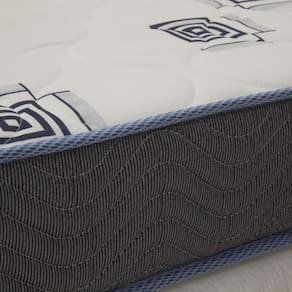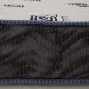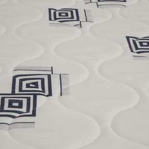 Características: Materiais e estrutura: Estrutura interna: Espuma D33 Pró Aditivada de Alta Performance Revestimento: Poiéster com bordado em matelassê Cor: Branco com lateral azul Capacidade de suporte: Até 100 kg por pessoa