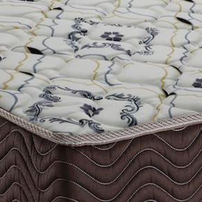 Características: Materiais e estrutura: Estrutura interna: Placa EPS + Espuma D45 Pró Aditivada de Alta Performance Revestimento: Poiéster com bordado em matelassê Cor: Marrom e Branco Capacidade de suporte: Até 120 kg por pessoa