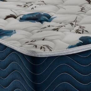 Características: Materiais e estrutura: Estrutura interna: Placa EPS + Espuma D28 Pró Aditivada de Alta Performance Revestimento: Poliéster com bordado em matelassê Cor: Azul e Branco Capacidade de suporte: Até 80 kg por pessoa