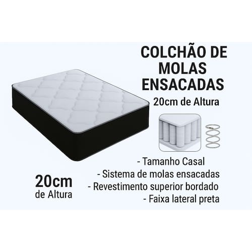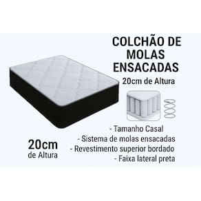 O Colchão tem sua estrutura composta por molas ensacadas individualmente, proporcionando conforto e suporte necessário para a parte lombar da coluna e é altamente resistente e confortável, proporcionando melhor sustentação e durabilidade ao produto, o tampo é bordado, que entrega uma camada extra de conforto. Seu revestimento é com tratamento antialérgico e antiácaro. Esse é o colchão ideal para toda a família.
