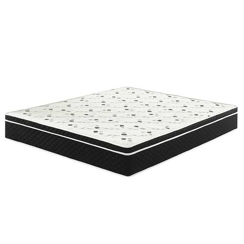 Especificações: • Medidas: 138 cm (largura) x 188 cm (comprimento) x 24 cm (altura) • Tipo: Molas Bonnel • Revestimento: Tecido matelassado (estampa conforme disponibilidade) • Lateral: Cor preta com costura reforçada e acabamento resistente