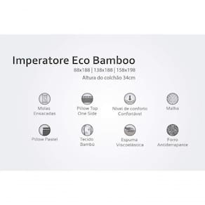 O Colchão Herval Imperatore Eco Bamboo tem Pillow Top e a beleza das linhas clássicas, aliada à tradição e tecnologia. É destinado a quem procura conforto sem abrir mão da durabilidade.