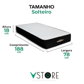 A tecnologia que a sua casa merece está na V-Store!O Colchão Orthopedic da V-Store combina suporte extra firme e conforto com sua espuma de alta densidade D33, oferecendo o alinhamento ideal para o corpo e um sono reparador. Com proteções antiácaro, antialérgico, antifungo e antimofo, ele garante mais saúde e bem-estar. Sua resistência acomoda até 110 kg por pessoa, tornando-o a escolha perfeita para noites tranquilas e confortáveis.Adquira o colchão Madrid e aproveite o conforto que você merece!CARACTERÍSTICAS DO PRODUTOModelo: OrthopedicMarca: V-StoreTamanho: SolteiroDimensões: 78x30x188 (Largura x Altura x Comprimento)Conforto: Extra FirmeSistema: EspumaPillow: Não se aplicaPeso Máximo recomendado: 110 kg (Por pessoa)Proteções: Antiácaro, antialérgico, antifungo, antimofoGarantia: 12 Meses (Espuma)