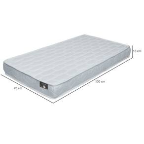 Estrutura: 100% espuma D18 certificadaRevestimento Superior: Poliéster com Strech bordado – 100% sintético, não e propenso ao acumulo de poeira e materiais orgânicos, além de ser fácil higienizaçãoRevestimento Inferior: Forrada em plástico PVC impermeável, indicado para realizar a troca de fraldasRevestimento Lateral: Poliéster – 100% sintético, não e propenso ao acumulo de poeira e materiais orgânicosColchão Tipo: Padrão americano com largura de 70 cm e profundidade de 130 cmPeso Suportado: Suporta o peso de até 40 kilosIndicado: Recém-nascidos e crianças até 3 anosCertificado: Sim, pelo INMETRODimensões do produto