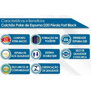 Dimensões(Cm): Comprimento(Profundidade): 188cm x Largura: 88cm x Altura: 12cm Tecido com Tratamento do Colchão - AntiÁcaro e AntiFungo Bordado do Revestimento do Colchão - Matelassê Forração Revestimento do Colchão - Poliéster Modo de Utilização do Colchão - Double Side Camadas Interna do Estofamento de Espuma do Colchão - Alta Qualidade Densidade da Espuma do Colchão - 20 Nível de Firmeza do Colchão - Extra Macio Peso Máximo Suportado do Colchão - 50 kg Certificação de Qualidade do Colchão - Qualidade Aprovada - INMETRO - Qualidade Costa Rica - Selo Abicol Nossa Avaliação do Colchão - Qualidade Boa Tempo de Garantia do Colchão - 3 meses