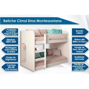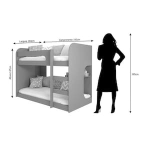 Dimensões(Cm): Comprimento(Profundidade): 199,30cm x Largura: 104,50cm x Altura: 147,00cm Material de Estrutura - MDF Tipo de Pintura - Ultravioleta Tipo de Acabamento da Pintura - Pintura Fosca Tipo de Acabamento - Móvel c/ Bordas Arredondadas Tamanho do colchão para usar no Beliche / Treliche - Solteiro 88x188 Diferenciais das Camas - Escada Lateral - Proteção Lateral Quantidade de Prateleiras - 1 Prateleira Montagem do Produto - Desmontável Certificação de Qualidade - Qualidade Aprovada Garantia - Garantia de 90 Dias