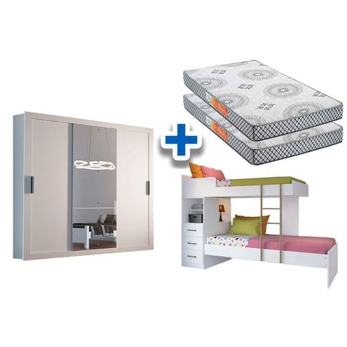 Colchão Pérola Polar (2un) + Guarda Roupa Veneza Luxo + Beliche Plus Branco Abaixo segue os produtos do KIT: Colchão Pérola Polar (2un) + Guarda Roupa Veneza Luxo + Beliche Plus Branco