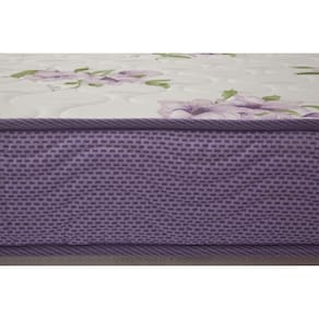 Estrutura em espuma D23 Pró Aditivada de Alta Performance. Tecido em Viscopoli, bordado em matelassê, tratamento antialérgico e antiácaro.