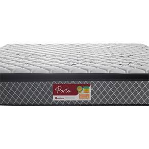 O Colchão Porto é um composto por Espuma Flexível 100% Poliuretano Densidade 33kg/m de 3cm, - Densidade 26kg/m de 3cm Densidade 33kg/m de 21cm contendo no lado superior Tecido Malha 100% Poliéster - Gramatura 191g/m, Tecido inferior 100% Poliéster - Gramatura 97g/m e Revestimento Lateral 58% Algodão e 42% Poliéster com gramatura de 235g/m. e Malha 100% Poliéster Gramatura 150g/m