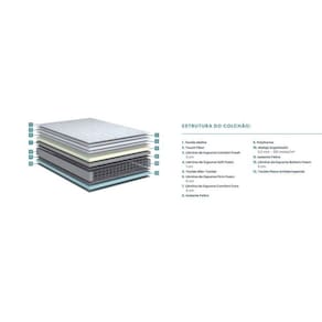 EXCELLENCE – Modelo desenvolvido no sistema de molejo superlastic, que tem como principal características firmeza e resistência, além de um suporte de peso maior que outros molejos mais convencionais. O sistema superlastic distribui de maneira uniforme todo o peso recebido, distribuindo toda a pressão por todo o molejo, aumentando a vida útil das espumas que são maciças e inmetradas. O suporte de peso deste colchão vai até 135 kg por pessoa. Colchão com 36 cm de altura, acabamento no pillow com tecido especial em malha diferenciada, com sua beleza, maciez, frescor, além das fibras internas que compõe este tecido para uma sensação de acomodação corporal perfeita e espuma especial Fresh, a espuma patenteada da Ecoflex, mais fresca, flexível, e muito durável. Abertura para Ventilação: Não Ambiente Principal: Quarto Antiácaro: Sim Antialérgico: Sim Antifungo: Sim Certificado: INMETRO - Portaria nº 75, de 04 de fevereiro de 2021 Complexidade da Montagem: Cor: Gelo Cor do Produto: Gelo Informações Complementares: Itens Inclusos: 01 Colchão, Guia de Uso e Cuidados. Linha ou Coleção: Coleção Fresh Technology Manual de Especificação Técnica: https://cdn2.madeiramadeira.com.br/atributo/ecoflex/1049049-certificado-de-garantia-mola.pdf Manual de Montagem e Instalação: Necessita Montagem: Não Nível de Conforto: Extra-Firme Origem do Produto: Nacional Peso: 33.5 Pillow: Pillow In Possui Certificado: Sim Precisa virar: Não Recomendações de Uso, Manutenção e Limpeza: Girar o colchão quinzenalmente no sentido pés-cabeça, escovar e aspirar o pó sempre a seco, não molhar com qualquer espécie de líquido. (Vide manual de garantia). Revestimento: Malha,73% Poliéster, 26% Viscose, 1% Elastano, gramatura 453 Sistema de Montagem: Tamanho: Queen Tipo de espuma: Tipo do Colchão: Mola